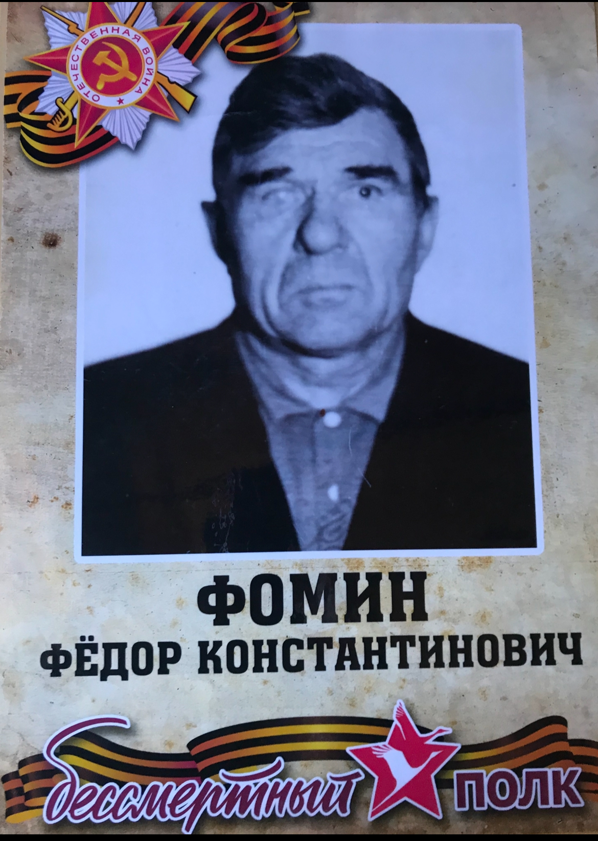 Дед Фомин Фёдор Константинович родился 07.01.1918 году д. Суя Дубровинского района Тюменской области.